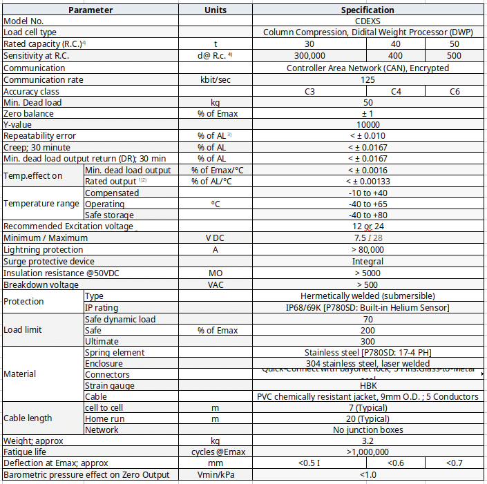 CDEXS Load Cell Specifications