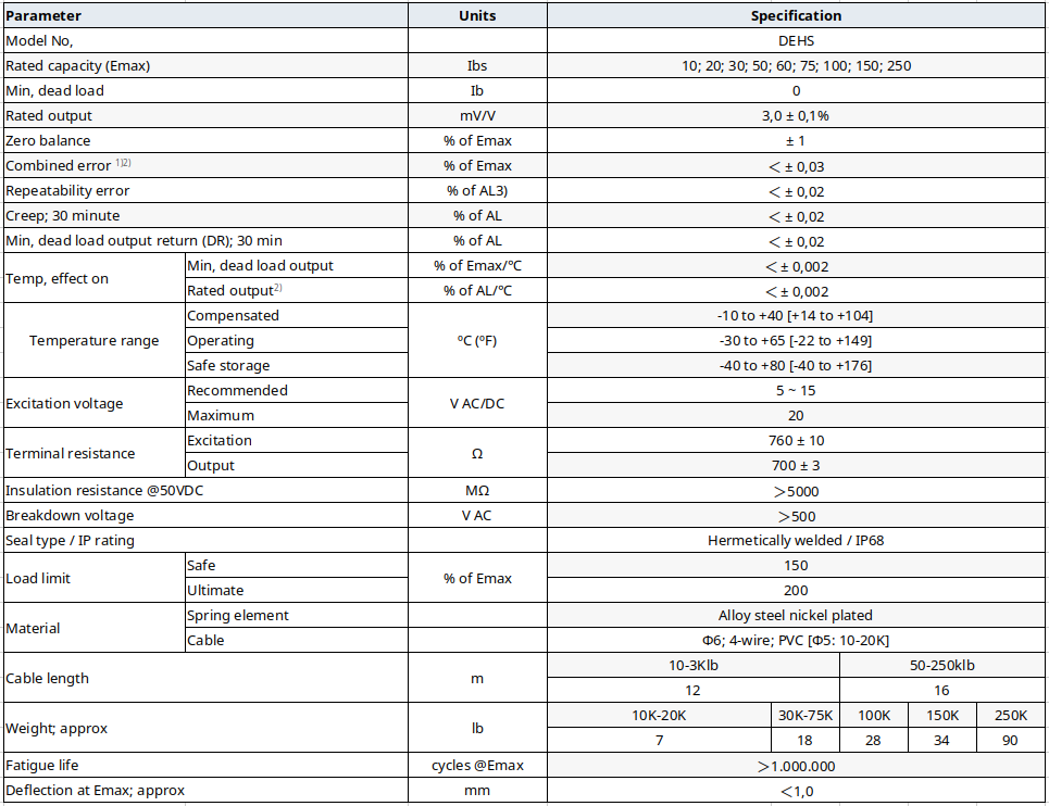 DEHS Load Cell Specifications: