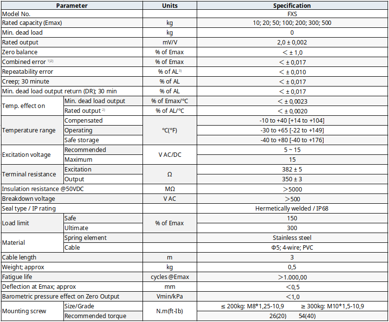 FXS is a typical bending beam is available in a wide range of capacities from 10kg to 500kg a pair or multitude of applications. Full stainless-steel construct and hermetically sealed the compact size of the FXS makes it the ideal load cell for multi-pier weighing equipment, and low-capacity dynamic process weighing systems, such as silo scale, vessel and hopper scale.