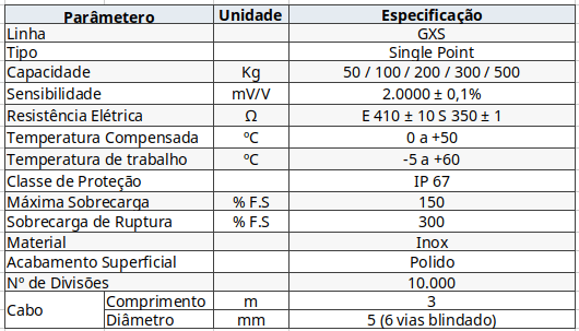 As células de carga mod. GXS são do tipo Single Point, insensíveis a forças laterais, esta célula é indicada para utilização onde a direção da aplicação da carga não passe pelo eixo do corpo da célula, com isso permitindo a montagem da plataforma de pesagem diretamente sobre a célula. Permite utilização com Suporte Flexivel – SUFLEX®.