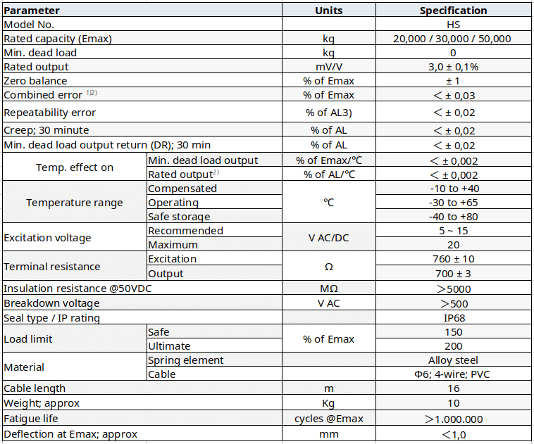 HS Load Cell Specifications: