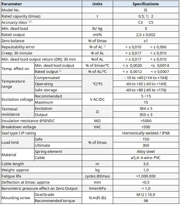 IS series are atypical and high precision, low-profile single-ended shear beam load cells, witch are available in a wide range of capacities. Full alloy steel or Stainless Steel (optional) construction and complete hermetic sealing ensures. Reliable accuracy and robustness in harsh industrial applications. The IS series are the ideal load cell for high precision weighing platforms with bolts by 2 pcs through-holes firmly at end, meanwhile the force would be applied from the self-aligning feet by the other end vertically.