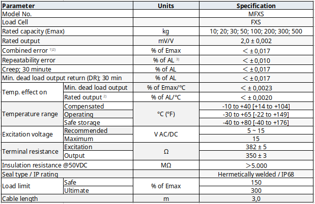 2. The sum of errors due to Temperature Effect on Output comply with the requirements of OIML R60 and NIST HB44