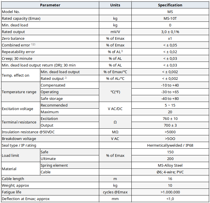 A célula de carga mod. MS possuem alta e média capacidade com extremidades cilíndricas para uso com elos em conjunto com o Suporte Articulado Duplo Elo – SADEL. Pelo fato de a célula de carga estar sempre paralela ao solo quando movimentada, é o sistema mais preciso e linear nesta faixa de capacidade.