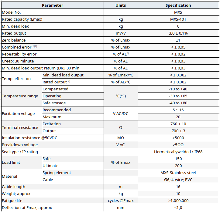 A célula de carga mod. MXS possui alta e média capacidade com extremidades cilíndricas para uso com elos em conjunto com o Suporte Articulado Duplo Elo – SADEL. Pelo fato de a célula de carga estar sempre paralela ao solo quando movimentada, é o sistema mais preciso e linear nesta faixa de capacidade.