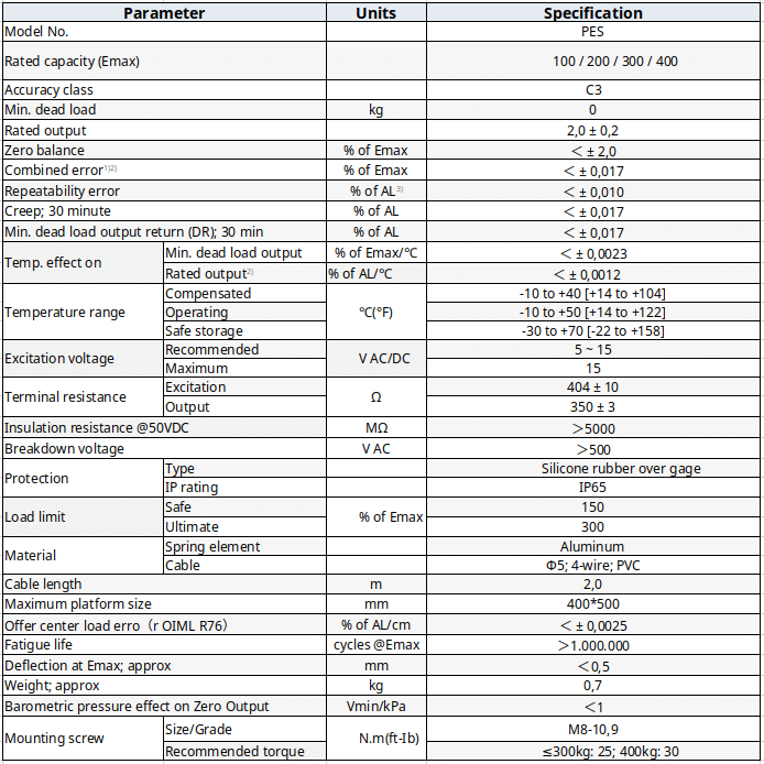 PES is a typical and standard aluminum single point load cell that is compact, medium capacity and ideal for a wide range of weighing equipment. Environmentally sealed with potting compound to ensure reliability and durability. The industry standard size and mounting hole configuration makes the PES is suitable for new equipment manufacturer or as a replacement for existed weighing equipment. Except for common applications of weighing equipment, it also can be used for force measurement for controlling.
